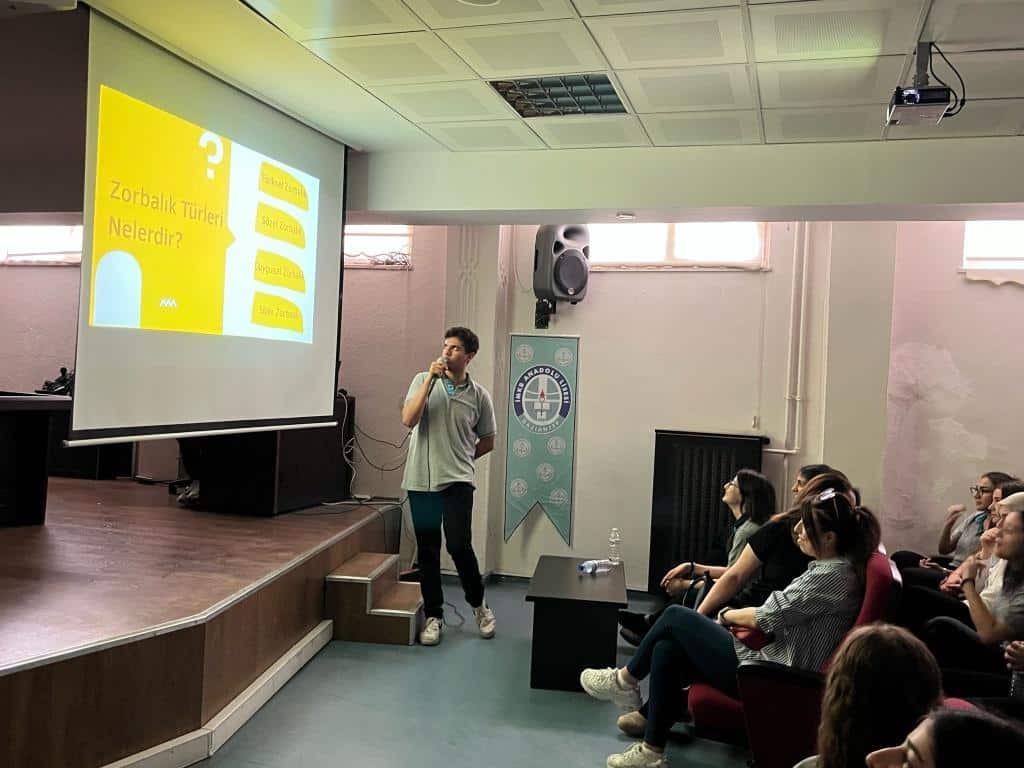 2024-2025 Eğitim-Öğretim yılında danışman öğretmenlerimiz Nilüfer KARAGÜZEL ve Nurcan ULUÇOBAN liderliğinde UNESCO Kulübü öğrencileri yıllık çalışma planı çerçevesinde konu olarak belirledikleri "Zorba Olma Akran Ol" projesi kapsamında her ay düzenli olarak bilgilendirici bir okul panosu düzenlemiştir. Bununla birlikte öğrencilerin hazırlamış oldukları anket okulun tüm öğrencilerine uygulanmış ve bu doğrultuda okul rehber öğretmeni Medine EDE ile birlikte bir seminer düzenlenerek 9-10-11. sınıf öğrencileri bilgilendirilmiştir. Yine bu proje kapsamında 11. sınıf UNESCO Kulübü öğrencileri akran zorbalığı temalı tiyatro çalışması hazırlamış ve okul öğrencilerine sunmuştur.